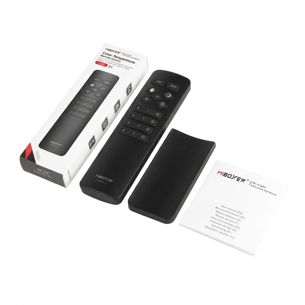 Zwart design met klasse voor ultiem gemak. Bedien tot 4 kleur zones draadloos met één afstandsbediening. Perfect voor sfeervolle verlichting met CCT / Dual white / tunable white LED sheets. Maak je ruimte uniek met de miboxer C1 afstandsbediening.