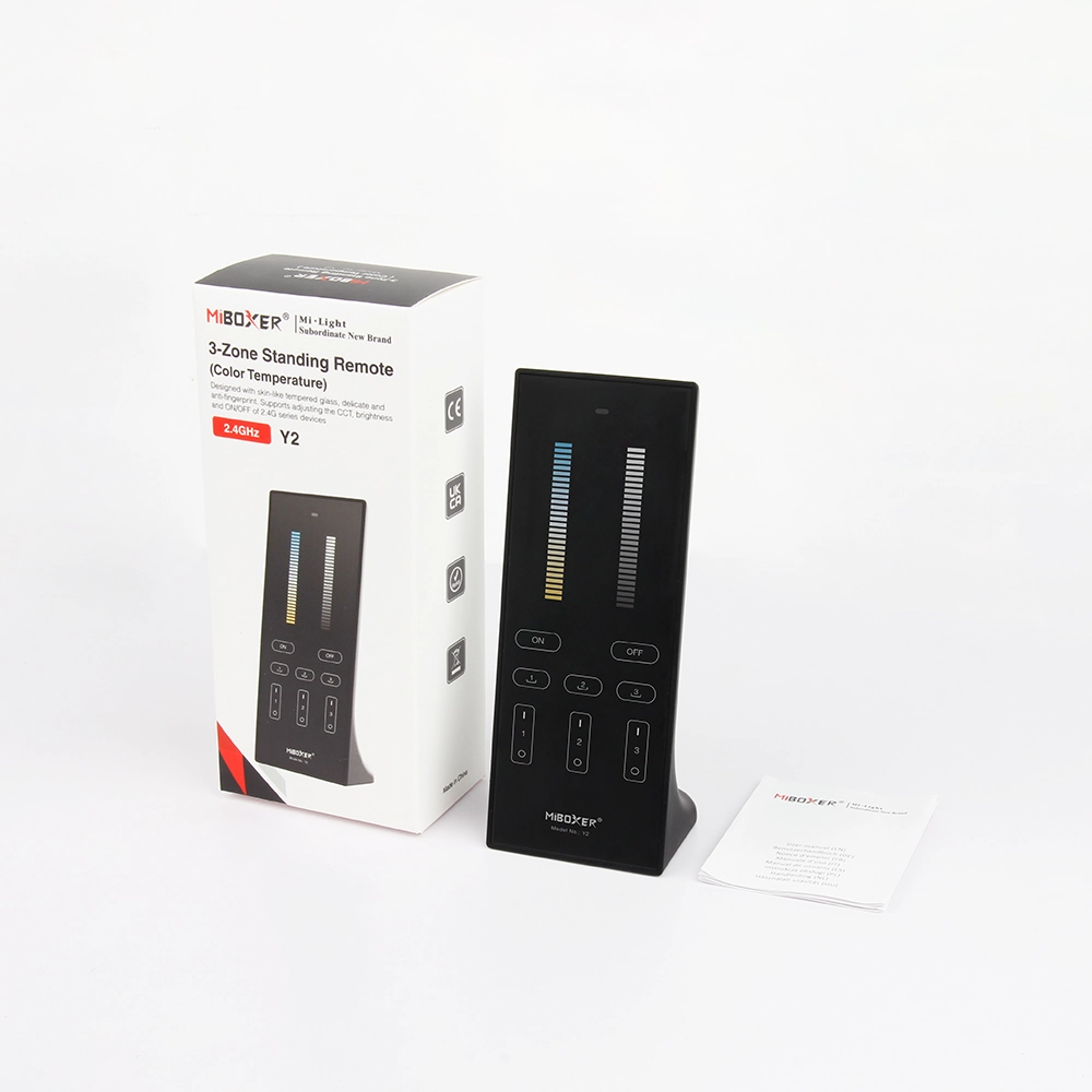 Design LED sheet afstandsbediening tafelmodel + Zwarte wandhouder Dual White CCT LED – 3 zones – Miboxer Y2