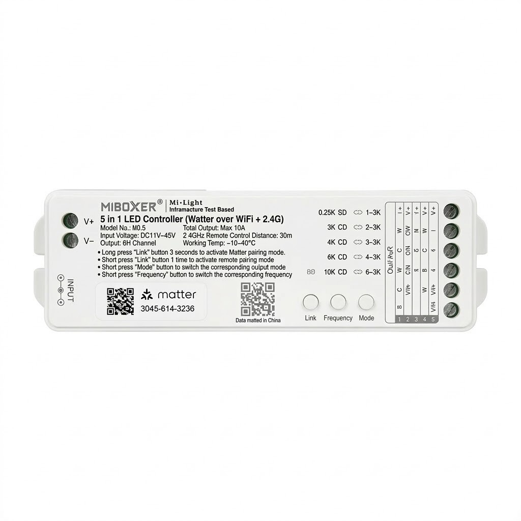 Matter over wifi LED controller 5 in 1 - voor Single Color/Dual White/RGB/RGBW/RGBWW/RGBCCT LED sheets12-24-48v - ML5
