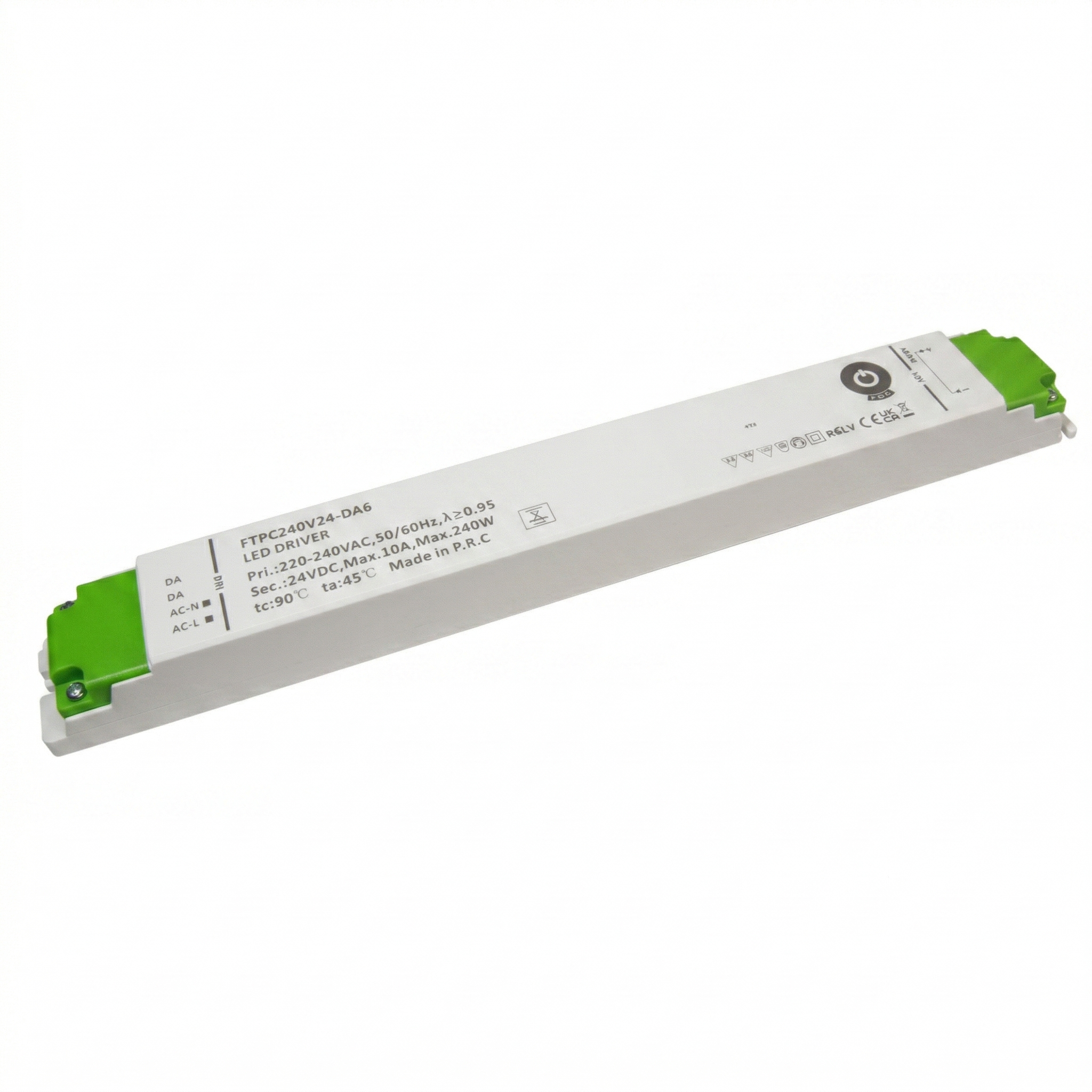 Ervaar de ultieme LED sheet -verlichting met deze compacte, krachtige DALI sheet driver. Breng uw ruimtes tot leven met een stralend 240W vermogen, verpakt in een elegante, smalle behuizing.