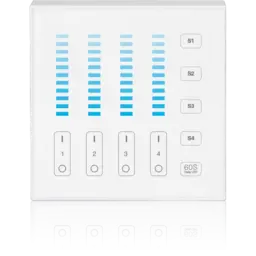 Witte draadloze LED sheets wanddimmer voor enkel kleurige LED verlichting. Werkt door middel van een optionele LED controller tot 4 zones. Zie bijbehorende producten onderaan de pagina.