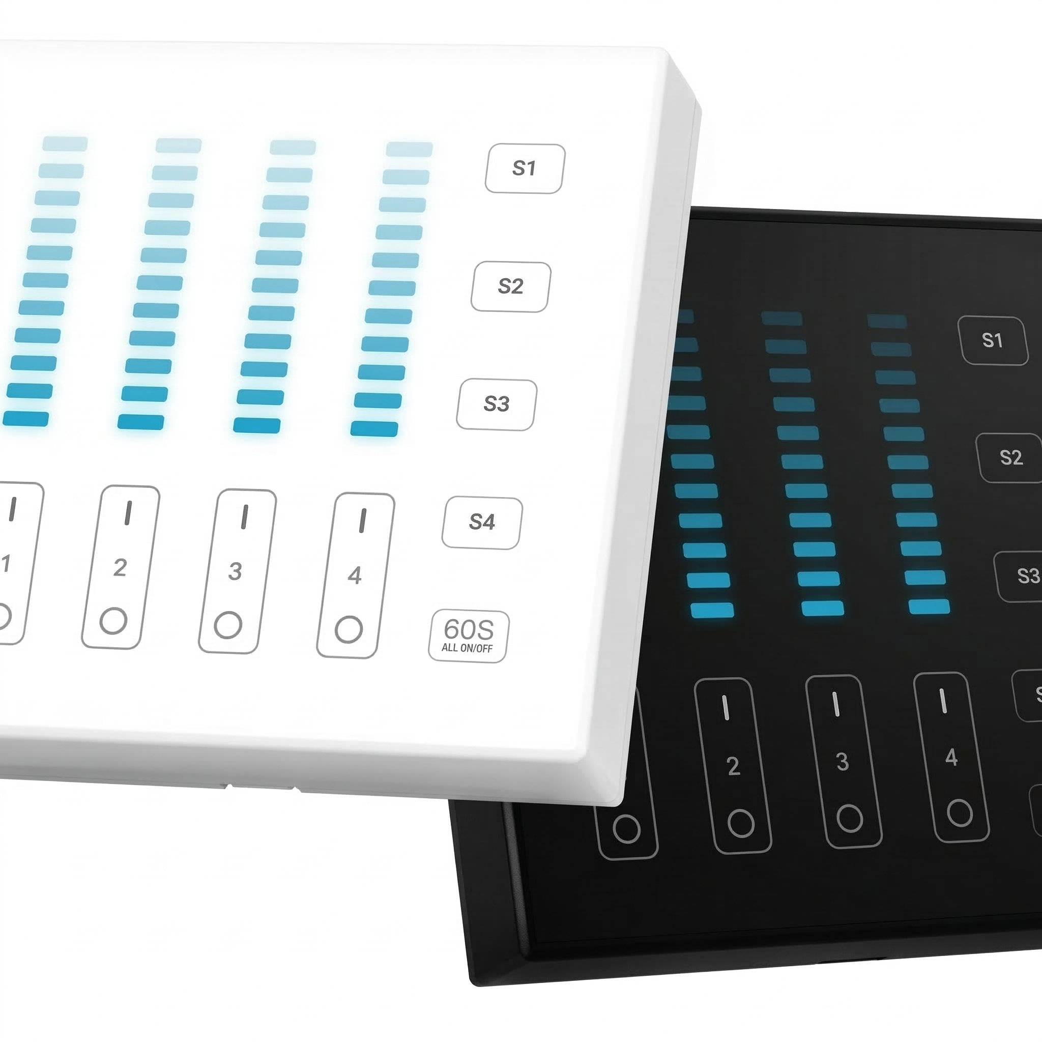 Zwarte draadloze LED sheets wanddimmer voor enkel kleurige LED verlichting. Werkt door middel van een optionele LED controller tot 4 zones. Zie bijbehorende producten onderaan de pagina.