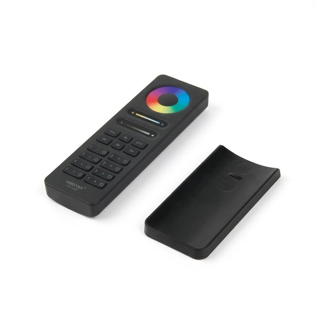 Revolutionair LED systeem: zwarte afstandsbediening met 8 zones & wandhouder. Regel elke LED kleurnuance met een druk op de knop. Draadloos bedienen van ieder type LED sheets met perfecte kleurdistributie.